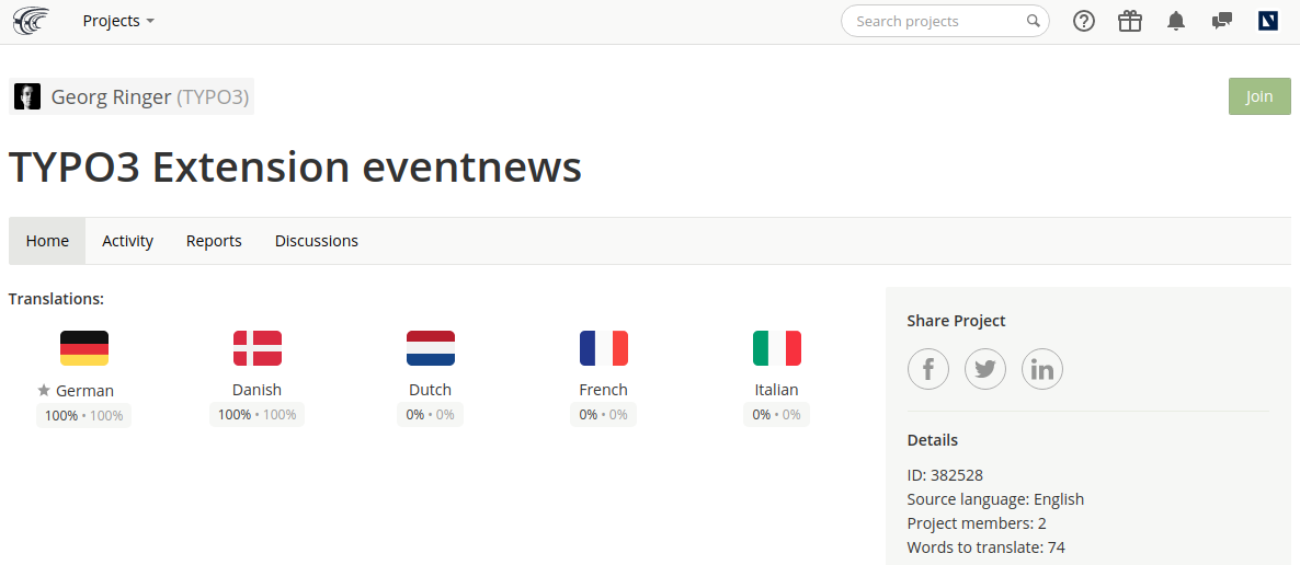 Search and go to TYPO3 extension https://crowdin.com/project/typo3-extension-news