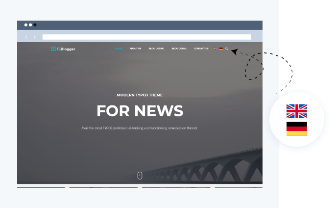 T3 Blogger TYPO3 News Template is the premium responsive blog and magazine template for Blogger fans. This template shows you how cool and flexible the Blogspot magazine template can be with TYPO3. With T3 Blogger, you can build your TYPO3 blog template with easy to use TYPO3 editor. This is a clean and minimal blog theme for perfect for writers who need to create personal blog site with simple creative features and effects to make readers feel the pleasure of reading blog posts and articles. Give it a shot now!