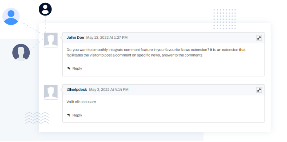 TYPO3 Comment Extension for TYPO3 Pages lets site visitors to easily add comments on a published page of the sites. The plugin adds a clean and pleasing comment UI. It uses nesting comment structure to increase engagement on the pages. TYPO3 Comment Extension comes with Email notifications for Admins. Furthermore, it also allows them to moderate the comments easily from Email or Backend. Facilitate your visitor to post a comment on a specific TYPO3 page, answer the comments. Comments are the ideal way to deal and stay in touch with your visitors and adherences.