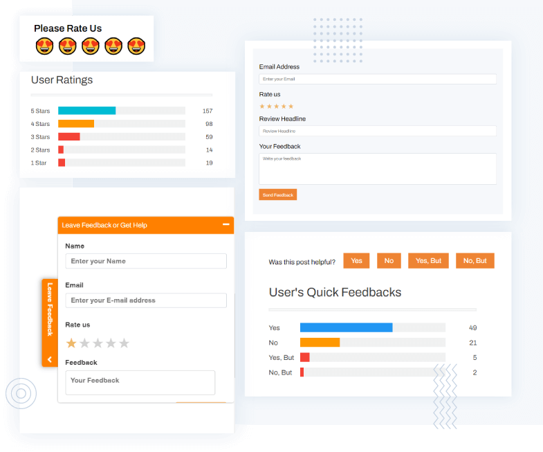 Die TYPO3-Feedback-Erweiterung ist die beste Möglichkeit, um das Feedback von Besuchern/Kunden auf Ihrer Website zu sammeln. Mit der All-In-One-TYPO3-Feedback-Erweiterung können Website-Administratoren Feedback-Formulare in verschiedenen Stilen auf der Website einfügen und wertvolles Feedback oder Einblicke von Besuchern erhalten.