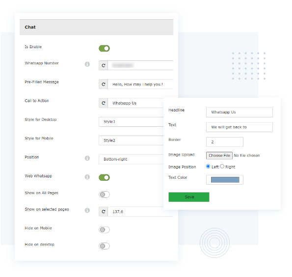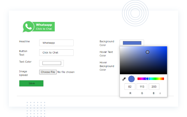 Mit dem whatsapp-chat-erweiterung für TYPO3 können Sie für jeden Agenten ein WhatsApp-Chatfeld einrichten. Sie können die Farben auswählen und sie so anpassen, dass sie zum Stil Ihrer Website und Ihrer Marke passt.