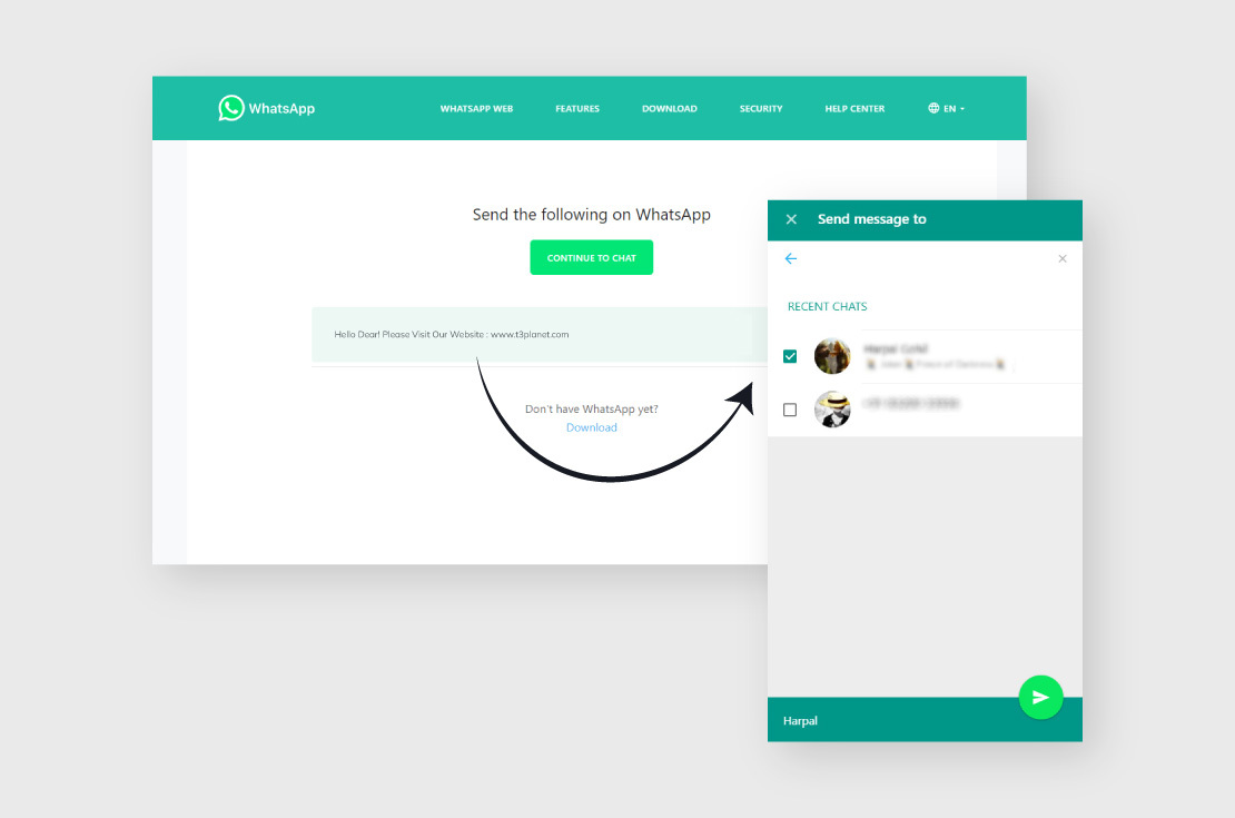 Darüber hinaus können Sie mit dem TYPO3 WhatsApp-Chat-Plugin jedes Agentenprofil je nach Profilbild, Berufsbezeichnung und Schaltflächenoption individuell anpassen. Sie können eine Nachricht, Daten oder Neuigkeiten von Ihrer Website mit jedem Ihrer WhatsApp-Kontakte teilen.